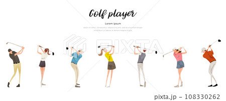 ベクターイラスト素材:ゴルフをする男性、人物セット