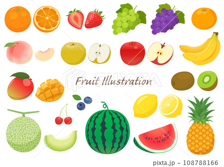 果物 フルーツ 線画に色つき セット イラスト