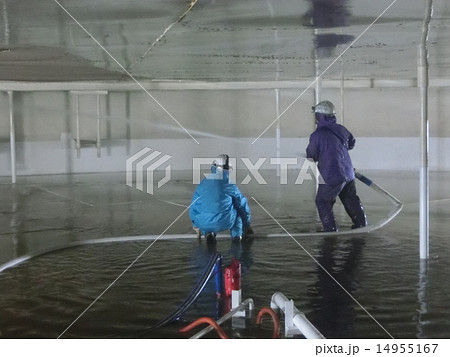 消火ホースによるタンク内面の洗浄