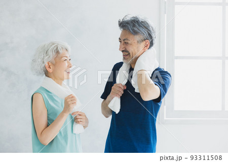 運動するシニア夫婦(スポーツ・健康・ヘルスケア)