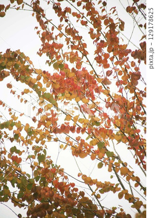 色づくカツラの葉