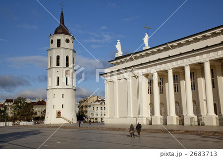 リトアニア ヴィリニュス カテドゥロス広場の大聖堂と鐘楼