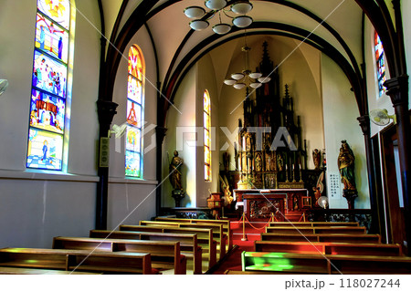 【青森】秋のカトリック弘前教会 ステンドグラスの光が注ぎ込む教会内