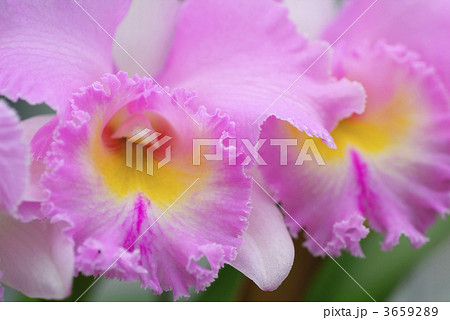 カトレア ピンク色の花 明るい緑背景 洋ラン ワイノットウォーク