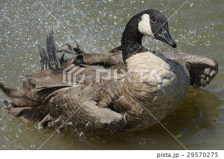 Canada Goose bathing in lake