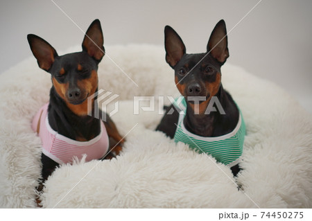 ミニチュアピンシャー 姉弟 サッカーユニフォーム 写真445