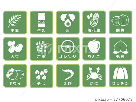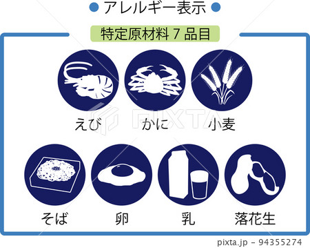 食物アレルギー特定原材料8品目と20品目アイコンイラストセット