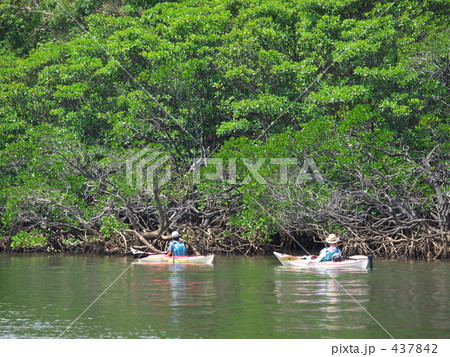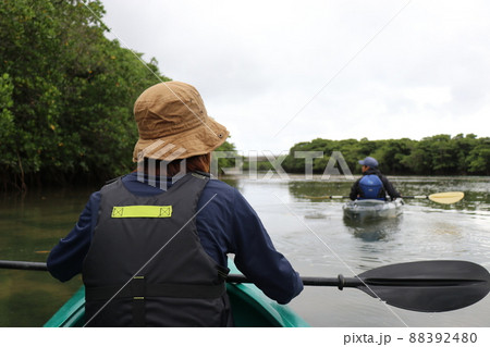 沖縄 石垣島 吹通川マングローブ群落 並んだシーカヤック