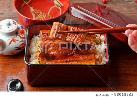 注)湯気は合成。国産のうなぎ蒲焼き、鰻かばやき、鰻蒲焼、かば焼き、高級グルメ、海鮮料理、ウナギ料理。