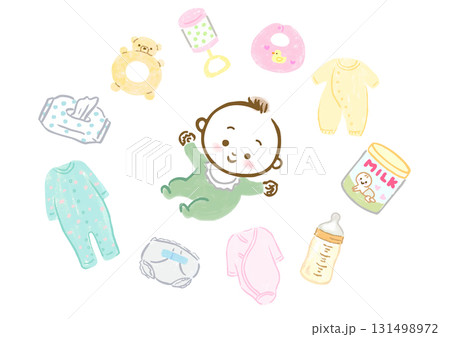 赤ちゃんのお世話グッズ 出産準備 ベクター素材