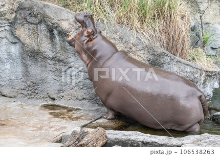 大きな口を開けるカバ 天王寺動物園