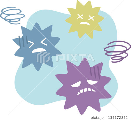 色々なギザギザのバイ菌をスプレーで除菌するイメージイラスト