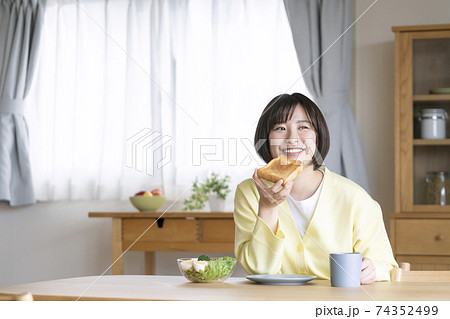 朝食を食べる若い女性