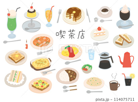 喫茶店の食べ物イラストセット手描き(カラー/輪郭線なし)