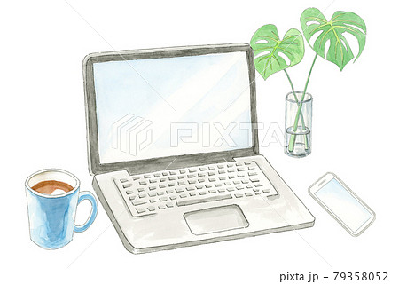 デスクワーク【手描き水彩画】