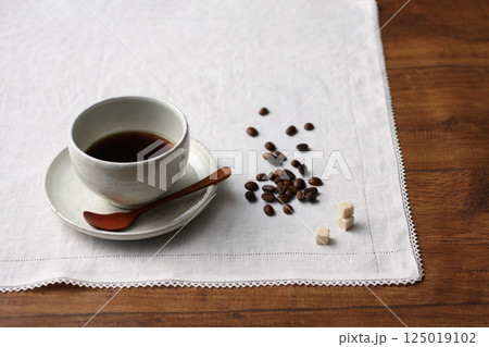 白いクロスとコーヒーカップ