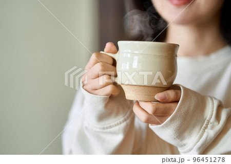 飲み物でリラックスするアジア人女性