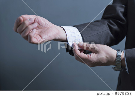 カフスボタン (ボディパーツ 顔なし 人物 会社員 ワイシャツ 役職 社長 コピースペース 手)