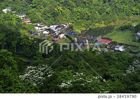 三貂嶺車站,火車,鐵道,鐵橋,平溪線,基隆河,河流,水,山,新北市,瑞芳區,油桐花,四月雪,五月雪