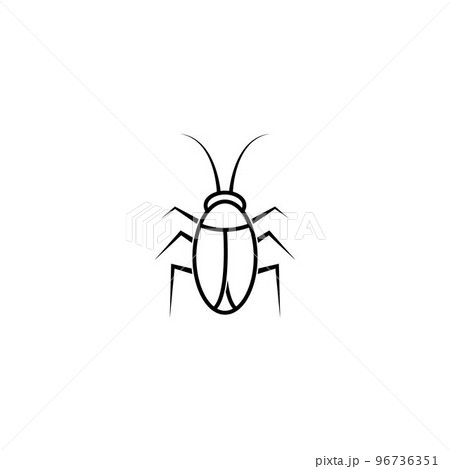 Simple icon of a bug. Black line hand drawn scarab beetle isolated on white. One line contour drawing. Vector illustration