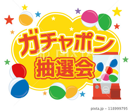 シンプルなガチャポン、くじ引き、福引き、抽選会のデザイン素材セット(タイトル、見出し、枠、イラスト)
