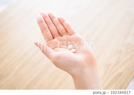 薬を持つ女性の手元