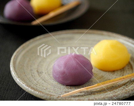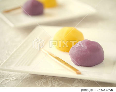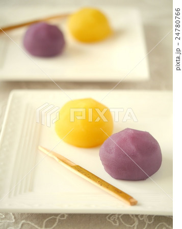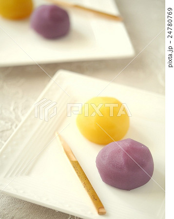 紫芋とカボチャのあんころ餅 (ハイアングル)