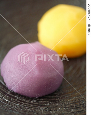 紫芋とカボチャのあんころ餅 黒背景 (横位置)