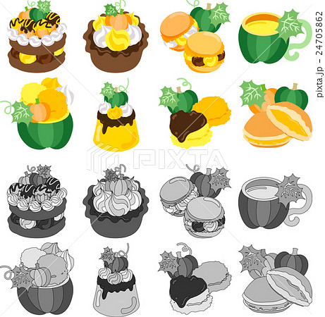かぼちゃのケーキとタルトとマカロンとドリンクとスコーンとどら焼き