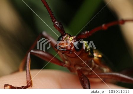 マクロで撮影した正面を見るカミキリムシ