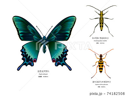 カラスアゲハ,キイロトラカミキリ,ヨツスジハナカミキリ