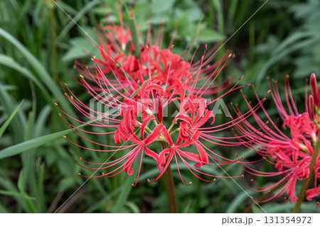 秋の始まりを告げる緑の中の赤い曼珠沙華【彼岸花】