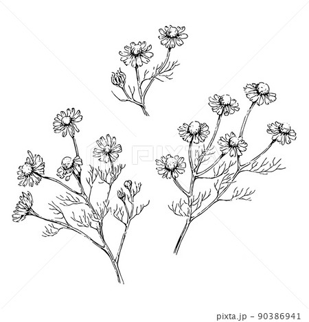 ハーブ:カモミールの水彩イラストのトレースベクター。ティー用ハーブ。