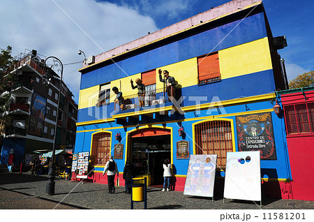色鮮やかなボカ地区の建物 臨港線の駅 ブエノスアイレス アルゼンチン 南米