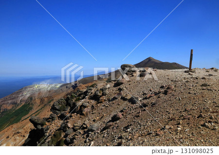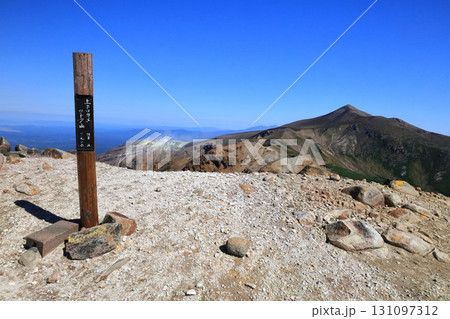 十勝岳連峰 カミホロカメットク山 山頂標識と十勝岳山頂方向の眺望 大雪山国立公園