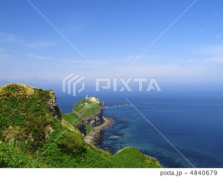 北海道積丹町 新緑が美しい夏の神威岬と神威岬灯台