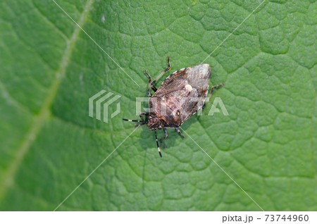 葉の上のカメムシ科キマダラカメムシ