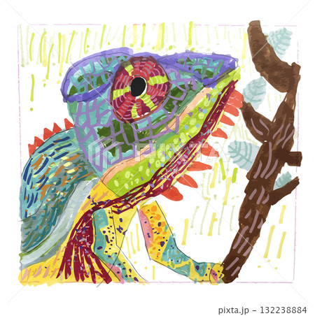 カメレオン・子供の絵(手書きイラスト・幼稚園)