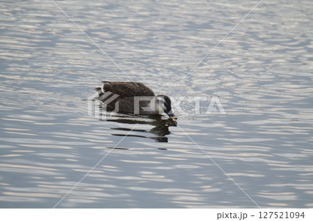 川面を優雅に泳ぐカルガモ