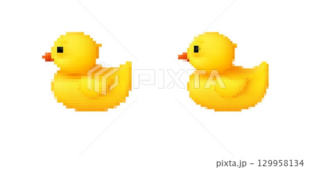 Retro pixel art of two yellow rubber ducks facing each other