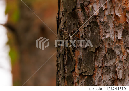 Bird blending into textured bark of a tree during a peaceful morning in the forest