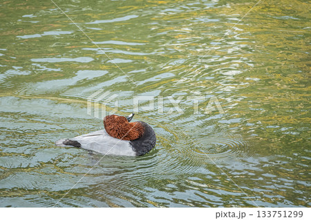 水に浮かびながら身体の手入れをするキンクロハジロ 京都市