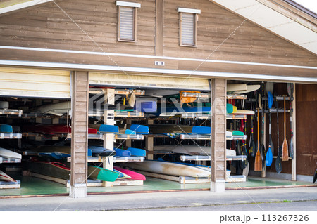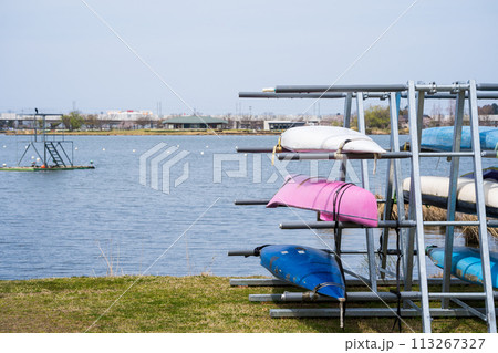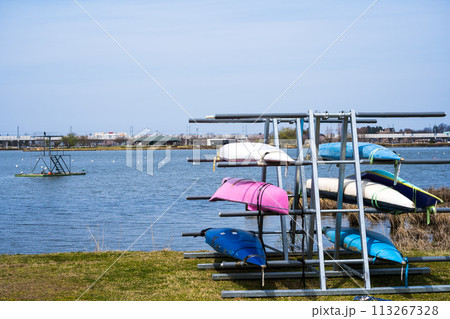木場潟公園内のカヌー競技場に保管されたカヌー|カヌーイメージ|小松イメージ|石川県小松市