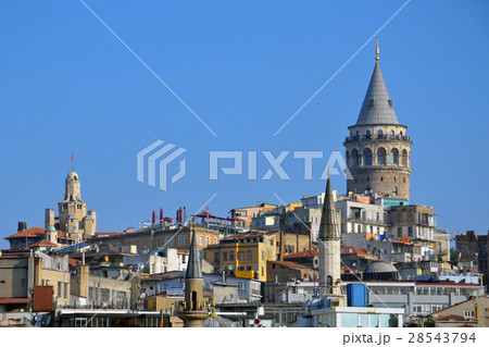 トルコ イスタンブールの新市街の街並みとガラタ地区の丘の上に建つガラタ塔