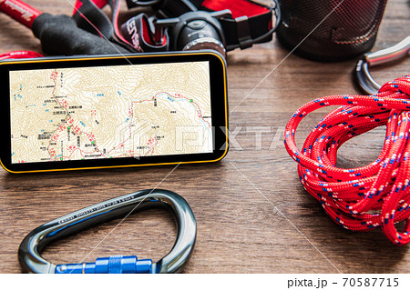 登山用品 山道具 登山イメージ 登山装備 ピッケル ザイル コンパス 地図 カラビナ