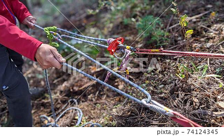 ロープと滑車を使った倍力システムによる要救助者の引き上げ