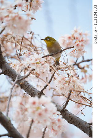 桜の花が優雅で青からピンクへの美しいグラデーション