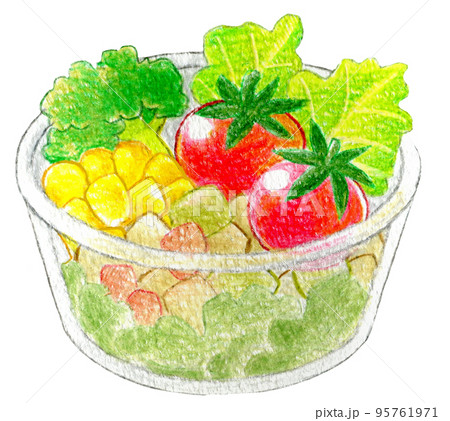 ファーストフード サイドメニューのサラダの色鉛筆画ワンポイント