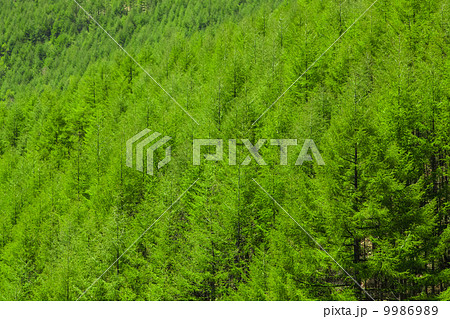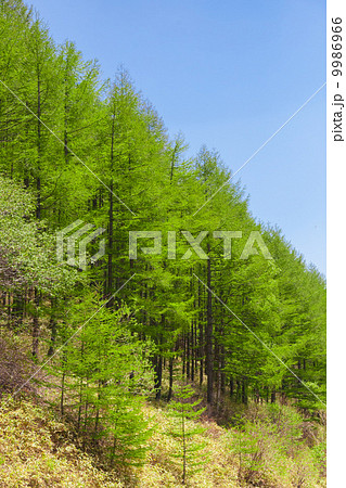 夏の信州カラ松の林