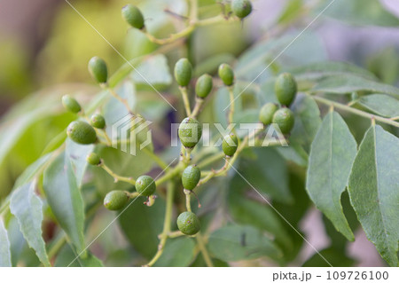 カレーリーフの熟していない青い果実(カレーベリー)別名:カラピンチャ、ナンヨウザンショウ